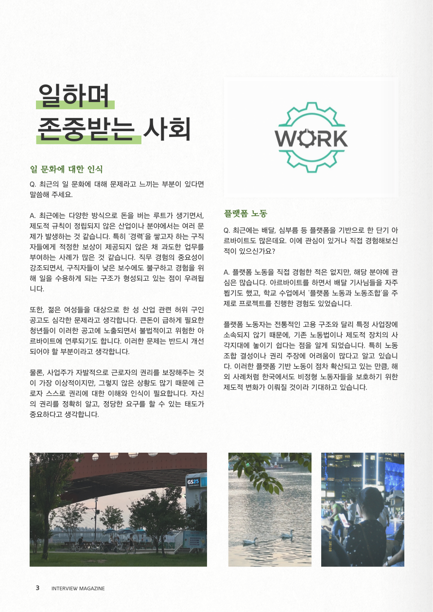 일 문화에 대한 인식, 플랫폼 노동 같은 최신 이슈까지.