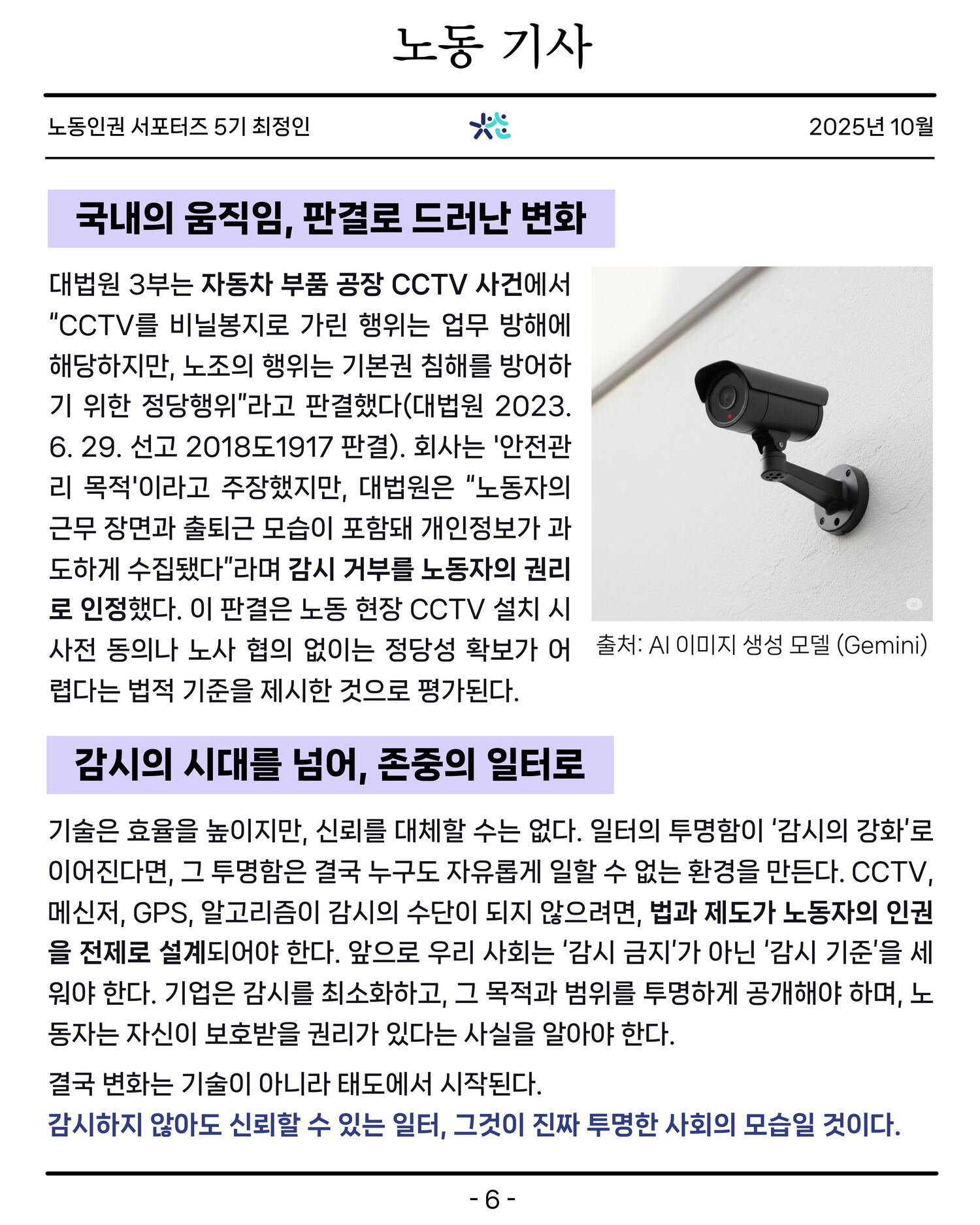 [노동인권 서포터즈 5기][기획기사] 감시받는 노동, 투명한 일터는 누구를 위하는가
