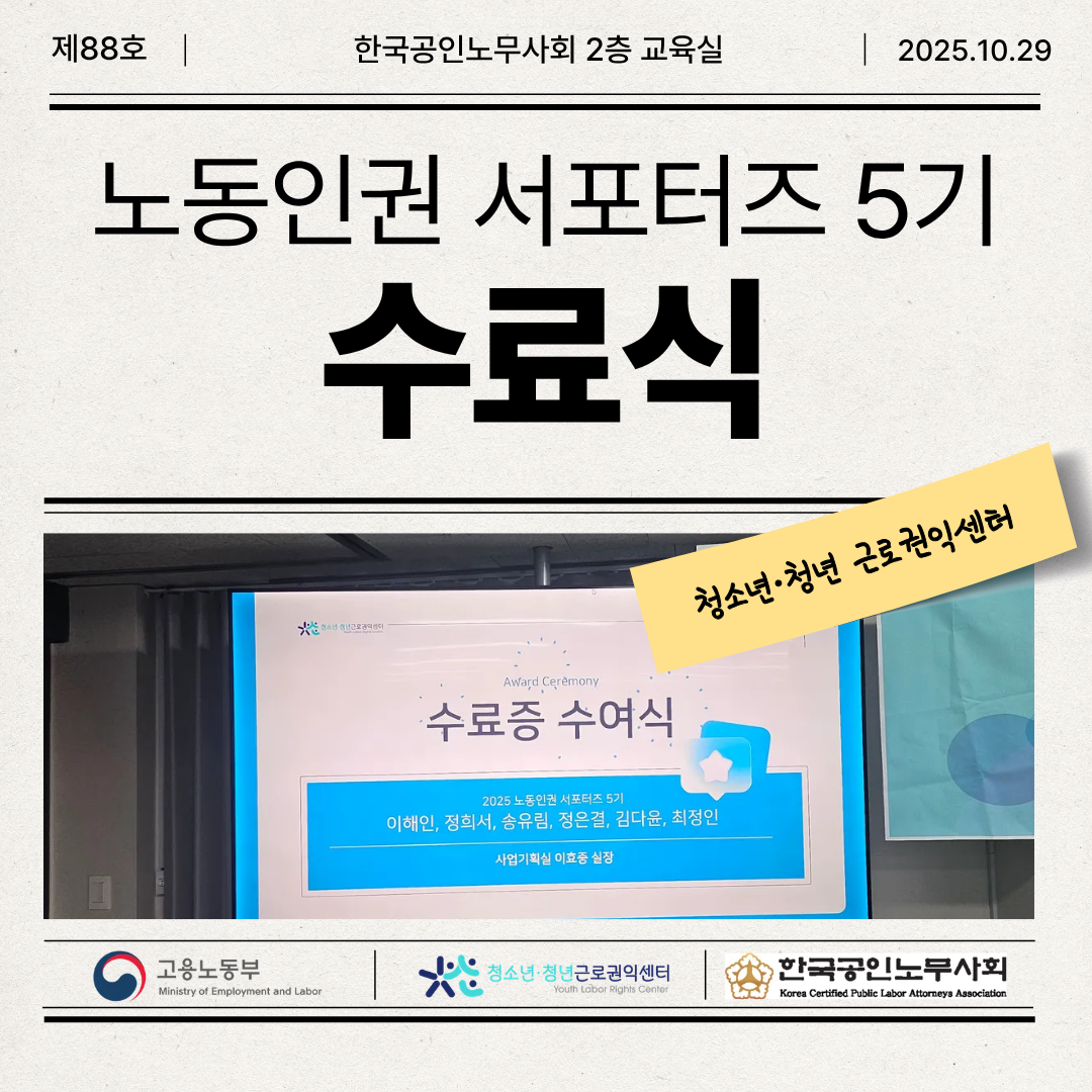 #청소년청년근로권익센터#청근익#노동인권#서포터즈#대학생#대외활동#5개월간여정#활동종료