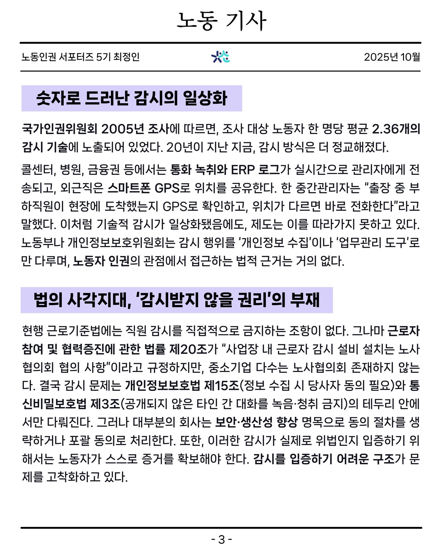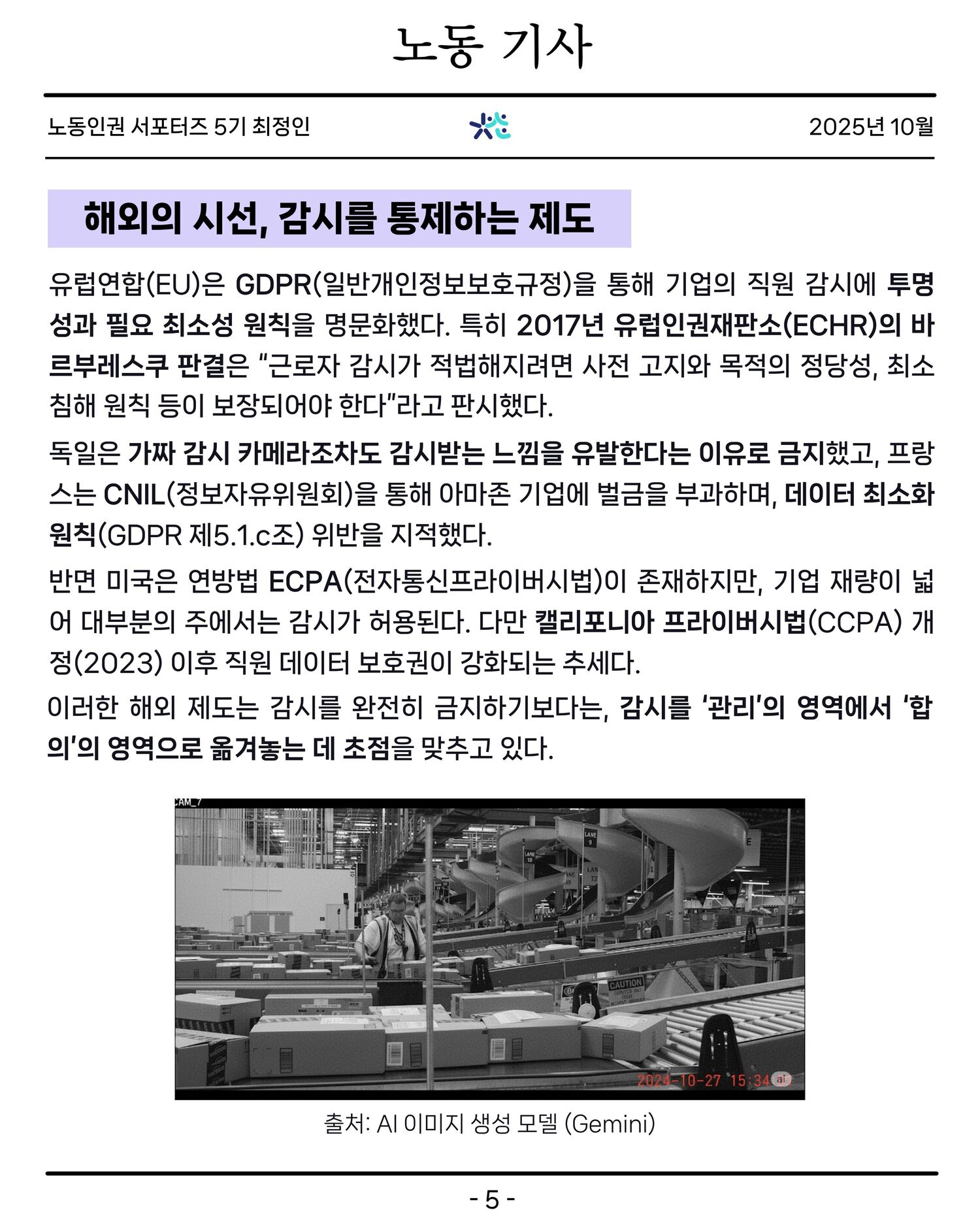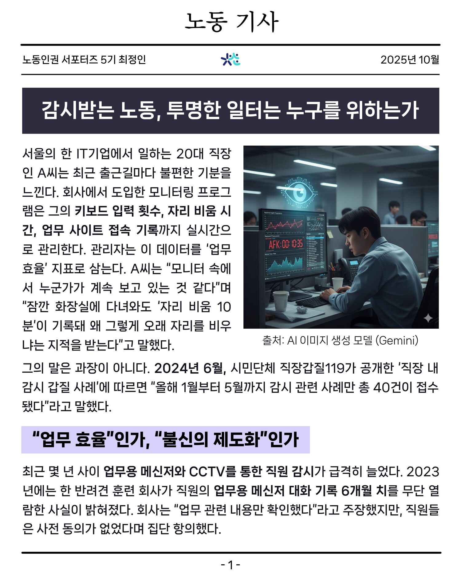 [노동인권 서포터즈 5기][기획기사] 감시받는 노동, 투명한 일터는 누구를 위하는가