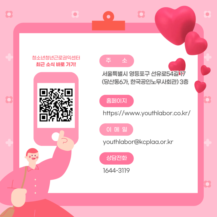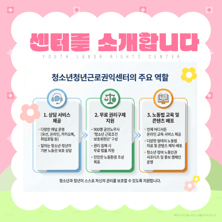 안녕하세요, 청소년˙청년근로권익센터입니다!