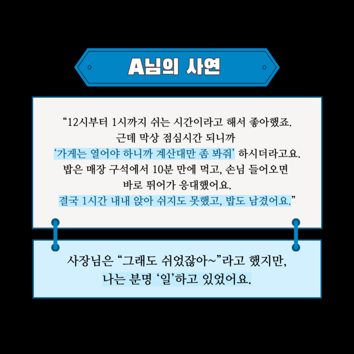 이번 편에서는 근로시간과 휴게시간의 차이, 그리고 내 소중한 휴게시간을 지키는 방법까지