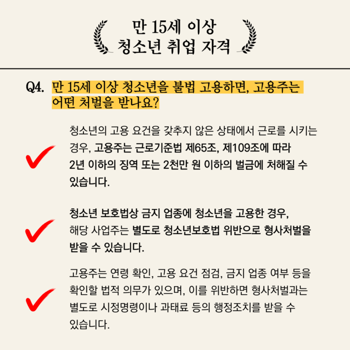 만 15세 이상 청소년이라면 누구나 일할 수 있을까요?