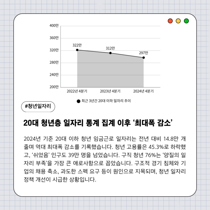 20대 청년층 일자리 통게 집계 이후 최대폭 감소