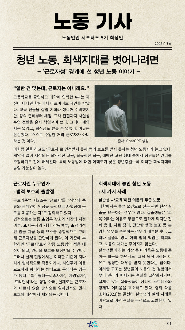 [노동인권 서포터즈 5기][기획기사] 청년 노동, 회색지대를 벗어나려면