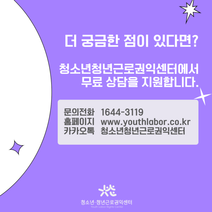 궁금한 점이 있다면 청소년근로권익센터로 문의하세요.