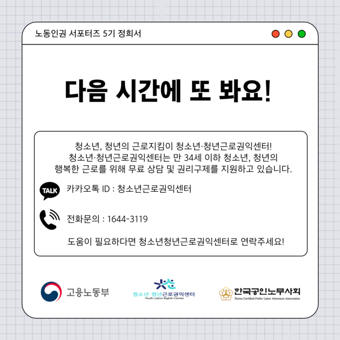 청소년청년근로권익센터로 문의 주세요!