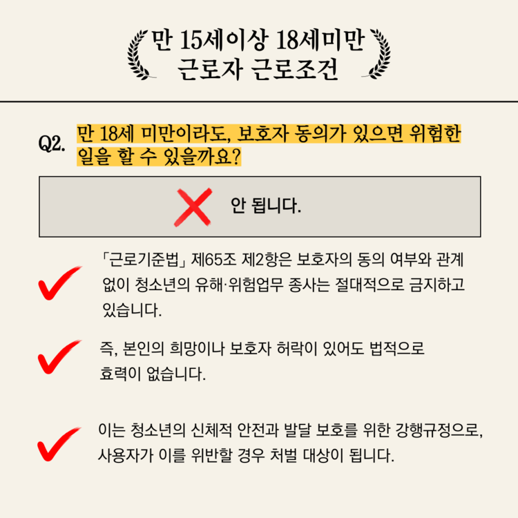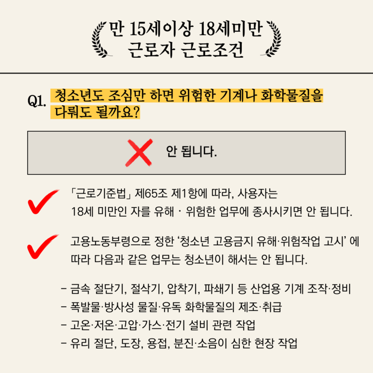 [노동인권 서포터즈 5기][카드뉴스] 청소년 노동권 퀴즈 : 청소년 유해·위험업무 제한 편