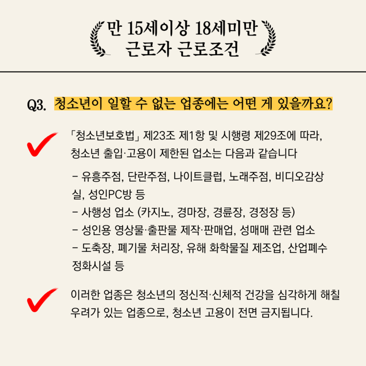 청소년이 일할 수 없는 업종,